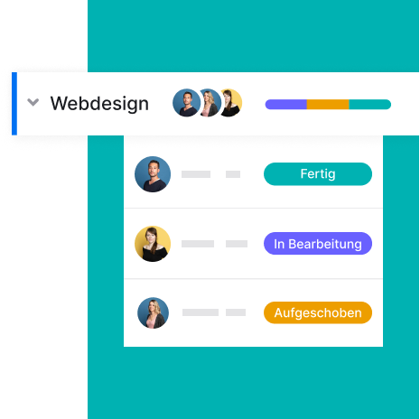Egal ob kleines Team oder wachsendes KMU: Du siehst sofort, wer woran arbeitet, was bereits erledigt ist und wie es als Nächstes weitergeht.